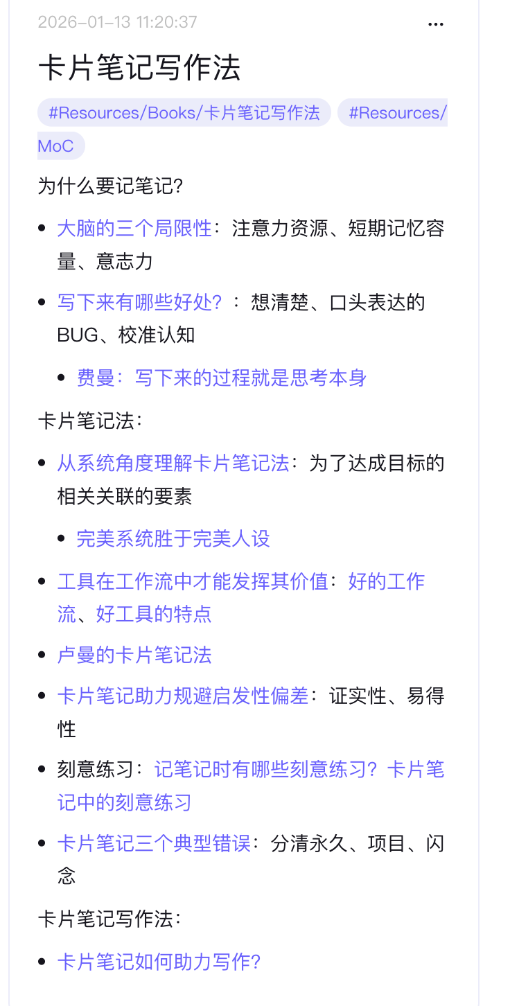 大致明白了,从为了建立起笔记间的关联系统性思考来说,这种方式更灵活,强调建立起“体系”,但对轻度的“线性”用户来说操作不够便捷。有利有弊吧,那现行方式也没问题