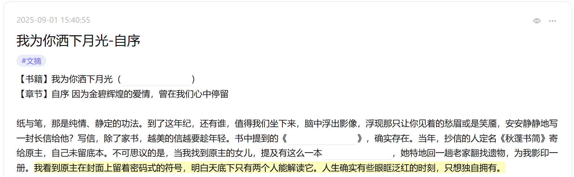 另外,如果觉得书摘这样的,回顾起来有难度的话,可以点回顾卡片右上角的“小眼睛”看一下答案再填的,这个也是专门为这样的场景所设计的
